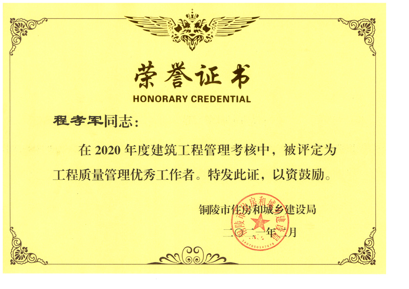• 銅陵市2020年度工程質量管理優(yōu)秀工作者...