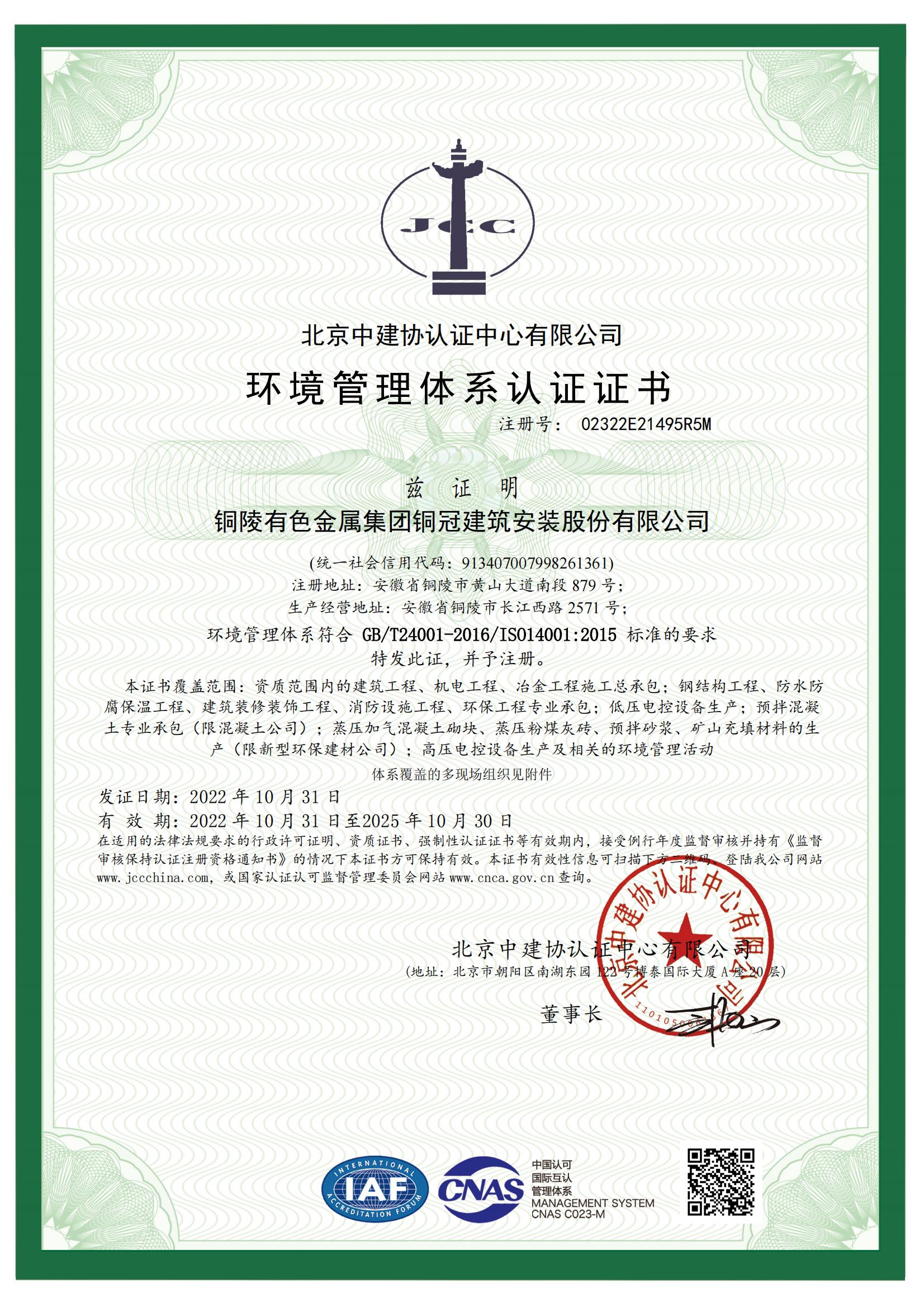 • 環(huán)境管理體系認證證書