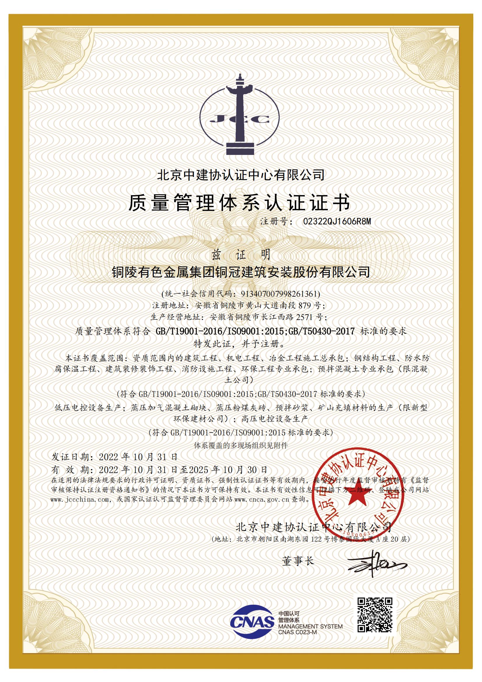 • 質(zhì)量管理體系認證證書