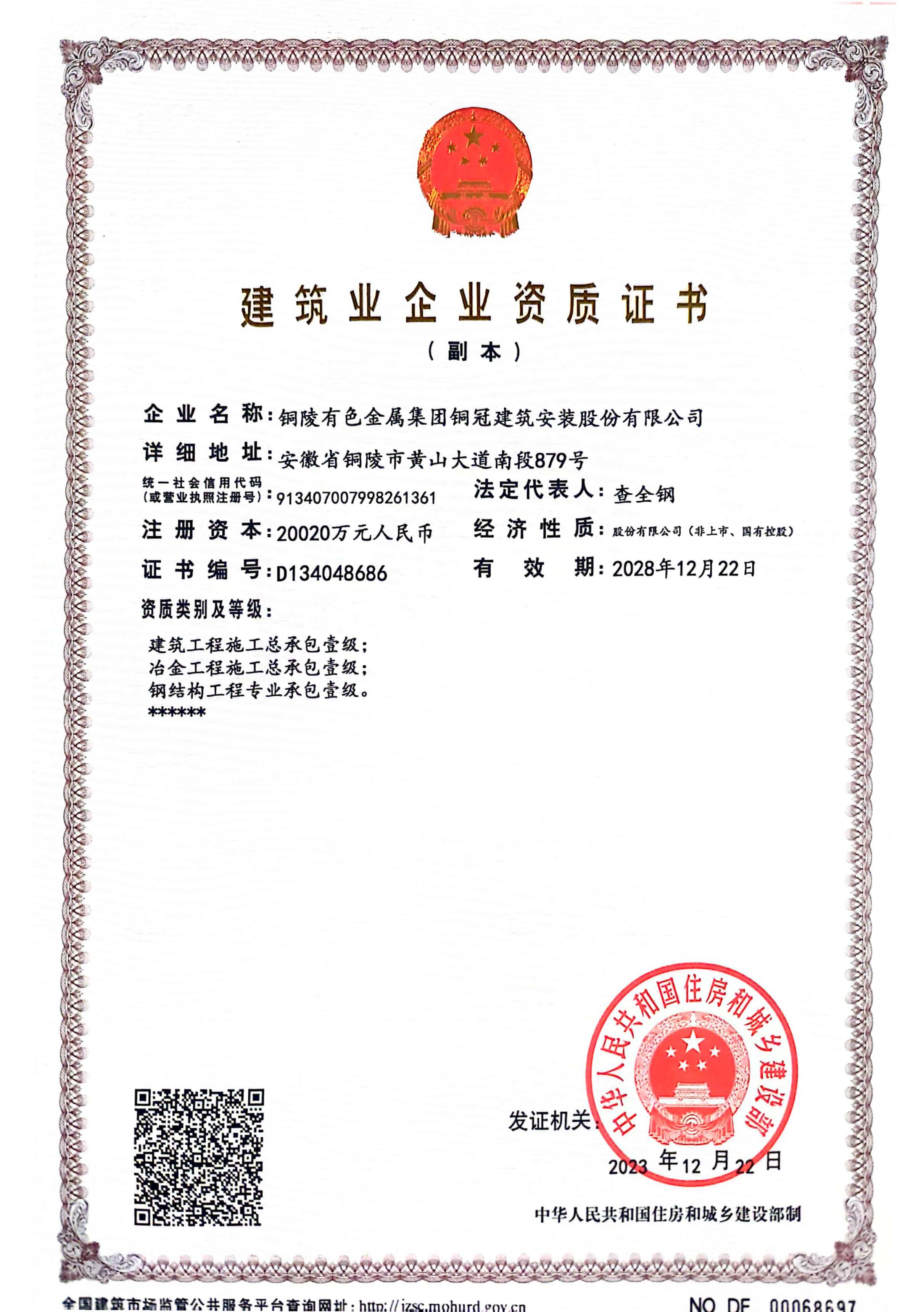 • 有色金屬工業(yè)建設工程質(zhì)量檢測機構(gòu)資質(zhì)證書